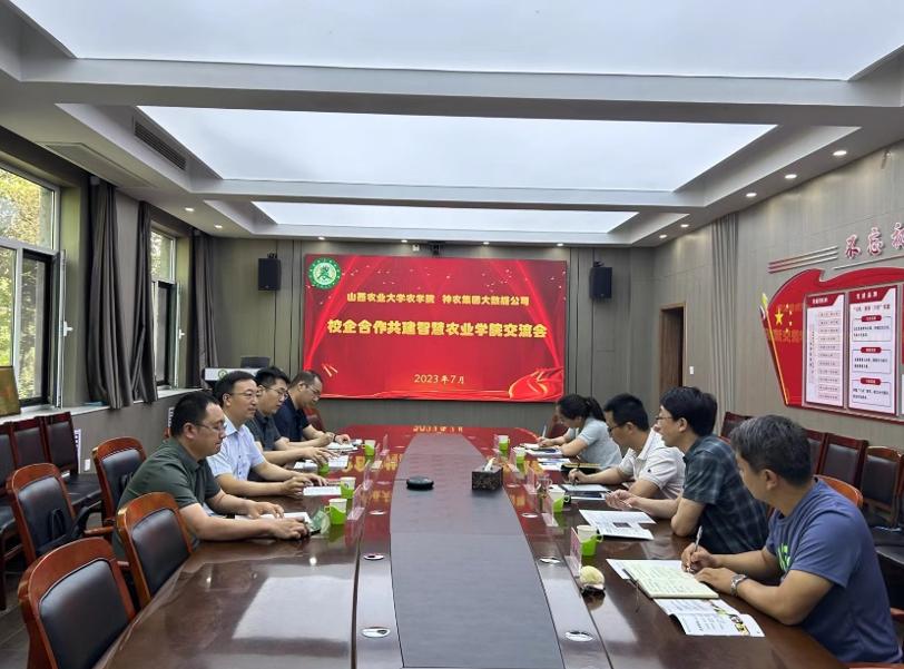 2023年7月3日上午,神农集团大数据有限公司总经理兰瑞忠、副总经理郝燕超、技术部负责人李焯、市场部负责人冯晓鹏一行来到(中国)有限公司,就进一步开展院企合作相关事宜与学院领导和专家开展了座谈与深入交流。安博官网体育院长原向阳、副院长冯美臣、郭数进及省级智慧农业学院、智慧农业专业教师肖璐洁、王超参加了座谈会。