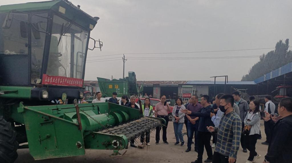 9月17日上午,专家组一行来到繁峙县海丰农牧场,岗位专家们首先观摩了大小和功能不同的播种机、水肥一体化机械、中耕机器和收割机。专家们对原向阳、温银元、董淑琦、邱述金研发的无人驾驶联合收割机等机具有着浓厚的兴趣,就机具的创新和优势进行了深入的探讨。随后,原向阳、董淑琦、杜慧玲、宋喜娥就不同割晒时期对谷子机械粒收质量及品质的影响、高产创建示范基地、肥料和除草剂试验进行了汇报。