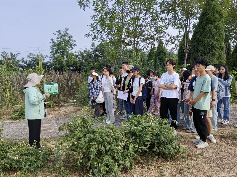 在参观实习过程,学生们参观了经济作物研究所的谷子、蓖麻、高粱、大豆、药材、向日葵等示范田,实地了解了经济作物研究所目前开展的各种作物抗旱性筛选、种子资源创新、育种方法与技术、品种选育成果、配套种植技术及推广应用等知识,并就经济作物高产栽培技术与研究所科研人员进行了交流。