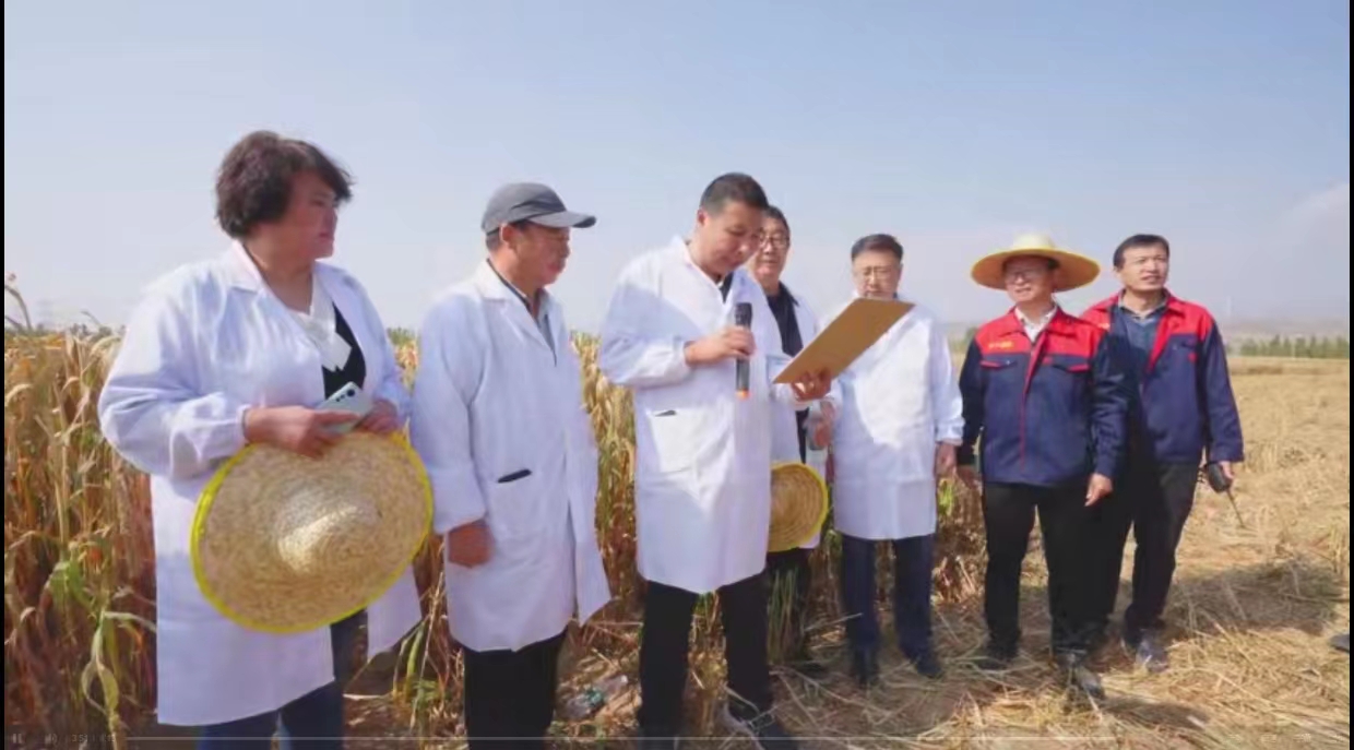 同时,在谷子千亩连片基地进行了机械化联合收获的机收测产,由国家谷子高粱产业体系机械化岗位专家、河北省农业机械化研究所有限公司杨志杰研究员任组长,山西省农业技术推广服务中心赵建明主任、山西农业大学郭平毅教授、国家谷子高粱产业体系岗位专家郭二虎研究员、山西省农业机械发展中心赵菁高级工程师等为测产专家组成员,根据农业农村部《全国粮食高产创建测产验收办法》,对山西农业大学和山西省谷子产业体系共同建设的“谷子有机旱作艺机一体化技术”高产创建示范基地进行机收实打测产,在千亩方中随机选取有代表性的田块,实收面积11.05亩,含杂率为1.56%,按照13.5%标准含水量折算,谷子亩产为515.49公斤,创建山西省谷子机械化实打实收最高单产记录。山西省谷子产业体系首席专家原向阳教授、副首席专家王军研究员、以及岗位专家史关燕、李会霞、卢成达、宋喜娥、邱述金、温银元等多位专家参加了观摩会和测产活动。