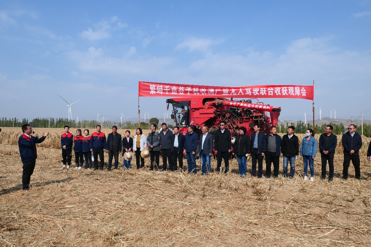金秋谷穗黄,喜迎丰收时。2023年10月11日,山西农业大学邀请国家谷子高粱产业体系、山西省农业技术推广服务中心、山西农业机械发展中心、山西省谷子体系、山西农业大学等相关专家,在山西省忻州市繁峙县海丰农牧场(山西农业大学谷子产业化基地)召开了“繁峙千亩谷子机收测产暨无人驾驶联合收获观摩会”。