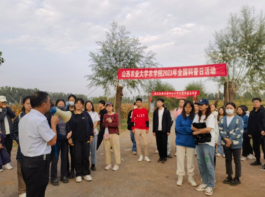 在山西农业大学高粱研究所修文实验实习基地,同学们首先在李爱军副研究员的带领下参观了国家农作物品种展示评价基地,观摩了基地展示的省内外近三年选育和已登记的24个谷子品种和40个高粱品种的田间表现,并在老师们的介绍下对其育种过程有了深入理解。随后,在边成才老师带领下观摩了高粱所农作物科普园,了解了红薯的营养价值和播种方式,学习了花生、马铃薯、苦荞和芝麻等作物的品种选育方法以及各自的应用价值。