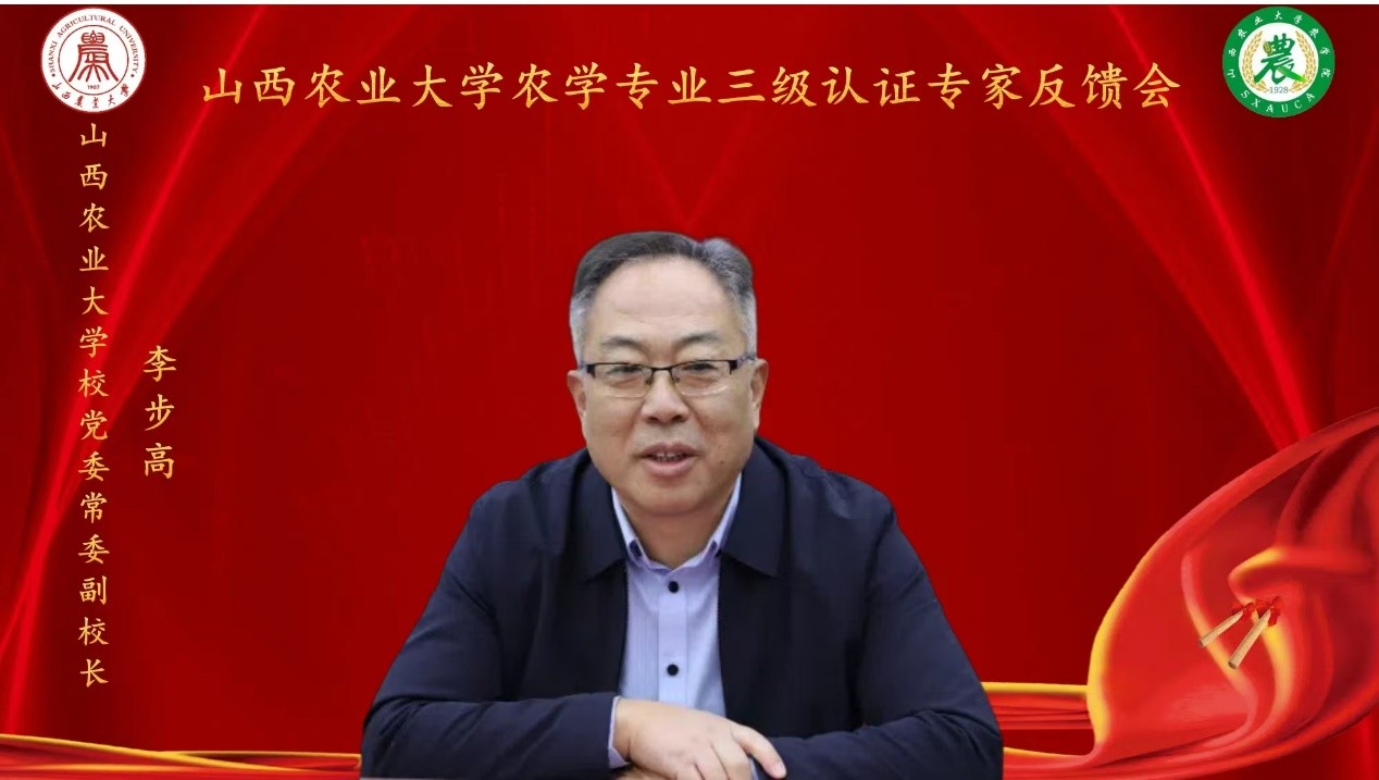 李步高首先代表学校向各位专家在农学专业三级认证工作中的辛勤付出表示衷心的感谢,他表示本次专业三级认证是对学校专业建设工作和教育教学改革的一次全面检视,学校将虚心接受专家的意见和建议,持续改进,不断提高专业建设和人才培养质量。