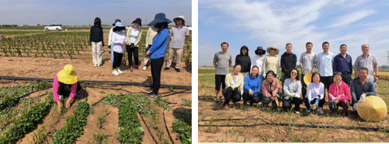 吕建珍研究员示范谷子间苗 参赛职工合影留念