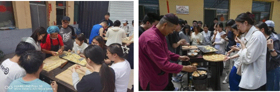 最具特色的实践环节是"油花花"非遗面食制作。作为山西传统面食代表,其制作工艺蕴含着对食材特性的深刻理解。同学们在工作人员指导下,将作物学中关于面粉特性的知识融入实践——通过观察面粉吸水性调整和面比例,依据面团发酵原理控制醒发时间。同时,结合功能农业课程知识,尝试在和面过程中添加富硒酵母、植物甾醇等功能成分,会不会探索开发具有抗氧化、降血脂等健康功效的新型非遗面食。在塑形环节,各种创意造型既展现了非遗技艺的精巧,也寄托了农学学子对土地的深情。当亲手制作的油花花在油锅中绽放出金黄色泽,同学们真切体会到从田间麦穗到餐桌美食的完整产业链,感悟到"一粒小麦"背后的农学价值与文化传承意义,也仿佛能看到功能农业为传统食品注入的创新活力。