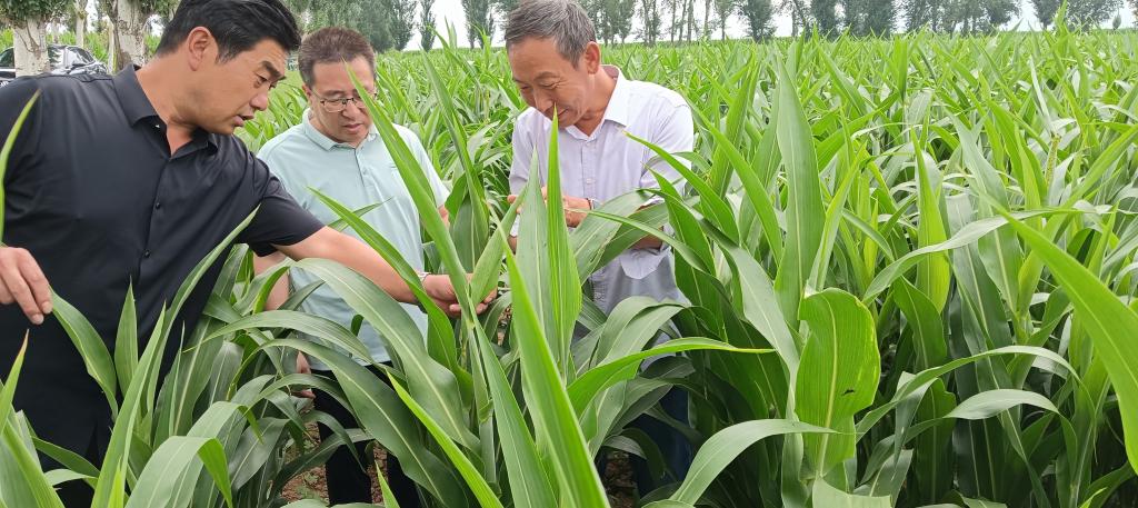 座谈结束后,项目组成员实地察看了高粱示范田,高粱植株长势整体表现良好,株高整齐、叶色浓绿,反映出田间管理规范、技术措施到位。该示范田为国家高标准农田,具有良好的基础条件,为后期稳产高产奠定了坚实基础。