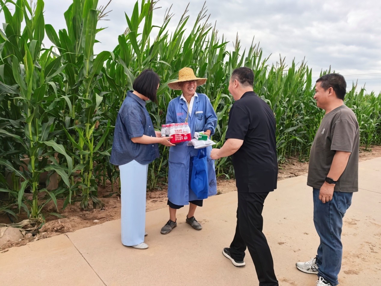 7月24日上午,农学院党委书记荆立群、分工会主席郭数进、分工会副主席程天灵及分工会委员来到东阳试验示范基地,开展以“夏送清凉 情暖一线”为主题的2025年送清凉活动,向奋战在科研一线、高温下坚持工作的教职工送上了组织的关怀,并为他们带来了藿香正气水、清凉油、风油精、毛巾等防暑用品。
