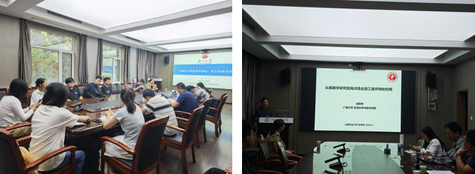 温荣辉,广西大学教授,博士生导师。2007年毕业于广西大学,获微生物学博士学位。2010年于美国田纳西大学植物病理与昆虫学系完成博士后研究。现为广西生物化学与分子生物学学会副理事长兼秘书长,中国生物化学与分子生物学学会农业分会理事,广西蔗糖产业协同创新中心岗位专家。主要研究方向为分子病毒学、病毒与宿主互作。先后主持和参与国家和省部级科研及教改项目20余项,发表论文60余篇,获得广西科技进步奖3项。本次报告温荣辉教授主要以“从病毒学研究到海洋渔业加工废弃物的利用”为主题,分享了其研究团队在分子病毒学与宿主互作方面的探索,并介绍了如何从病毒学领域将研究视角拓展至海洋渔业加工废弃物的高值化利用途径,从而实现耕地质量提升和农业绿色发展的双赢目标,展现了跨学科研究的创新魅力与广阔前景。