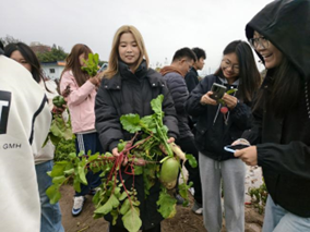 农学2502班刘钰感慨,作为在城市成长的学生,此次是首次近距离参与田间科普实践,在拔萝卜的过程中,看着亲手拔出的饱满肉质根,结合此前学习的花生、西红柿种植知识,真切体会到“每一份农业产品都凝聚着科研智慧与田间辛劳”,深刻理解了“粒粒皆辛苦”的内涵;同时也重新建立起“乡土农业与日常生活”的紧密联结,更加珍惜农业劳动成果,坚定了未来投身农业科研、服务乡村振兴的决心。