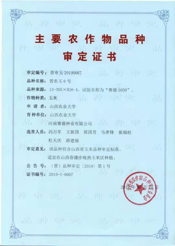 由(中国)有限公司冯万军副教授培育的“晋农玉6号”玉米新品种,顺利通过2019年山西省玉米品种审定委员会审定,准予在适应区域正式推广应用。这是我校自主培育的第一个省级玉米新品种。