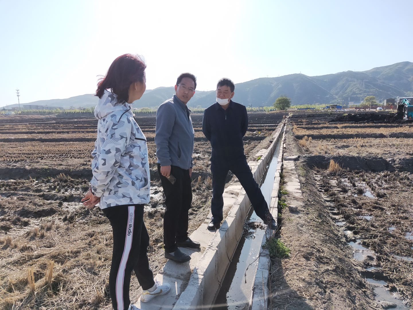 高志强教授和孙敏教授在翼城查看烟农1212小麦苗期长势并开展田间管理措施指导