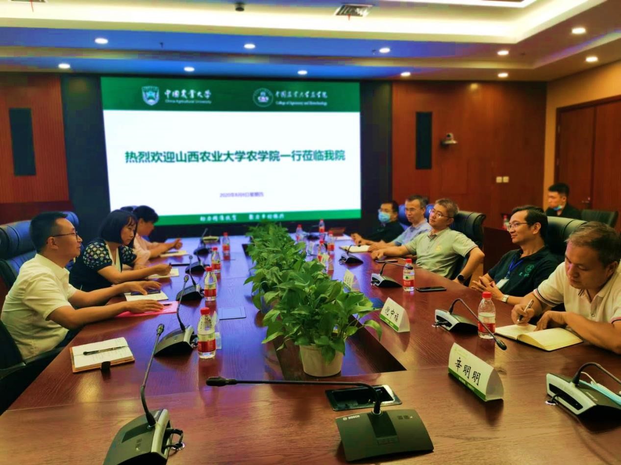调研组第二站抵达了中国农业大学安博官网体育,受到了党委书记张远帆、院长金危危教授、副院长倪中福、曾昭海、张海林教授,院长助理辛明明、孟庆峰,学工办主任杨海岩等的热情接待,召开了座谈会。会上,双方就作物学科发展,安博官网体育发展及其规划,特别是学科规划、科研评价、平台建设、学术事务管理、师资队伍建设、人才培养等方面进行了深入沟通和讨论。学习了中国农业大学安博官网体育在科研大团队建设、实验室共享管理、绩效考核、激励学生创新创业等方面的先进经验。