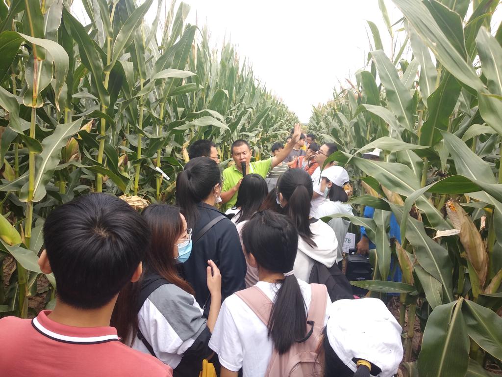 接下来李小波总监结合该企业承担的一些国家级和省级重点项目,包括国家重点研发计划课题—玉米杂种优势利用技术与强优势杂交种创制,西北国家重点研发项目—西北耐密高产抗旱玉米新品种培育和山西省重点研发计划(农业领域)项目—抗倒伏、抗青枯适机收玉米种质创新及新品种选育等,带领全体师生到大丰种业东阳试验基地育种试验田讲解玉米新品种选育和试验示范工作,从选系、测配、品比试验、区域试验再到生产试验、委员会考察等内容都进行了详细介绍。一个新品种的诞生往往要经历12到15年左右的时间。育种是一项十分艰辛的工作,这就需要育种工作者能沉的下心来研究,同时更要对土地负责、对农民负责。听了介绍人的话,同学们若有所思,深受触动。此外,还介绍了单倍体育种的优势和一些选种的方法和细节,同学们将讲解与理论相结合,加深了专业知识的储备积累。