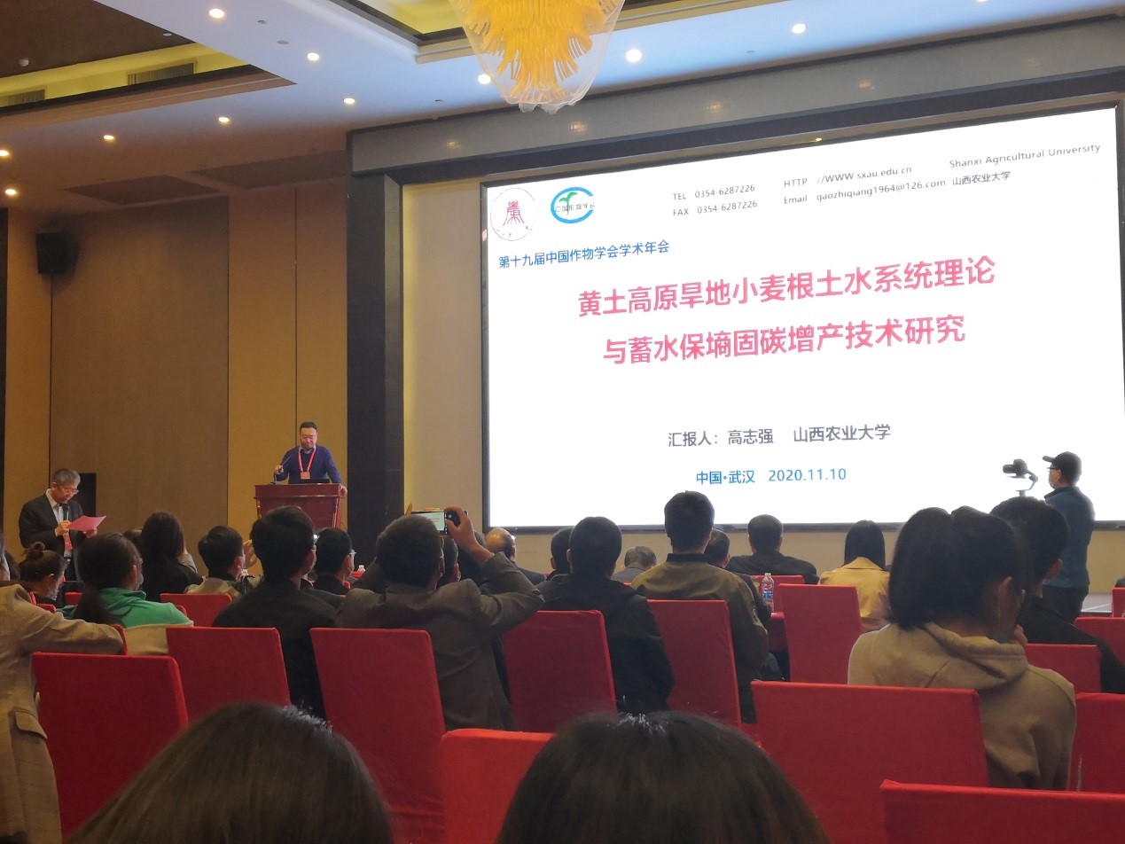 会议期间,安博官网体育教师、学生积极参与学术交流与讨论,高志强教授在“绿色丰产高效栽培与乡村振兴”分会场做了题为《黄土高原旱地小麦根土系统与蓄水保墒固碳增产技术研究》的学术报告;李润植教授指导的博士生高慧玲在研究生论坛“作物基因挖掘与分子育种”分会场上做了题为《亚麻荠CsDGAT3基因功能分析及在植物油脂遗传改良的应用》的报告;7篇摘要入选中国作物学会学术年会论文摘要集;5份墙报在大会展厅中展出。其中,博士生高慧玲从32名汇报研究生中脱颖而出,荣获“研究生论坛优秀学术报告奖”;原向阳教授指导的硕士生马珂提交题为《Effects of pyrazosulfuron-ethyl on photosynthetic characteristics in leaves of foxtail millet》的墙报荣获“优秀墙报奖”。