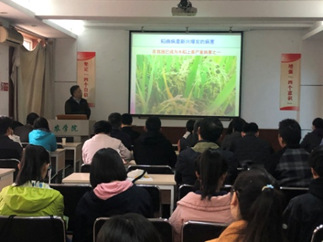 11月5日下午,孙教授载农学楼229做了《水稻稻曲病菌蛋白参与致病性的分子机制与抗病分子育种》的学术报告,他详细地介绍了稻曲病通过花丝侵染的特殊性,制定了开花前几天防治的策略,做了认真解读、深入浅出的讲解,介绍了酵母杂交、效应因子预测、激酶底物测定等新技术,引导大家开展创新性研究。