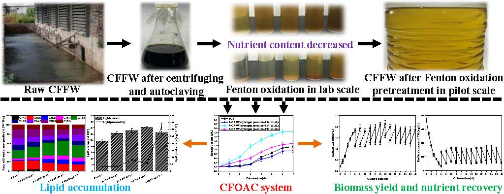 近日,山西农业大学分子农业与生物能源研究所功能微藻团队在“Journal of Environmental Management”(SCI 2区top,IF=6.79)上发表题为“Advanced treatment of chicken farm flushing wastewater by integrating Fenton oxidation and algal cultivation process for algal growth and nutrients removal”和“Enhancing growth and oil accumulation of a palmitoleic acid-richScenedesmus obliquusin mixotrophic cultivation with acetate and its potential for ammonium-containing wastewater purification and biodiesel production”的2篇研究论文。