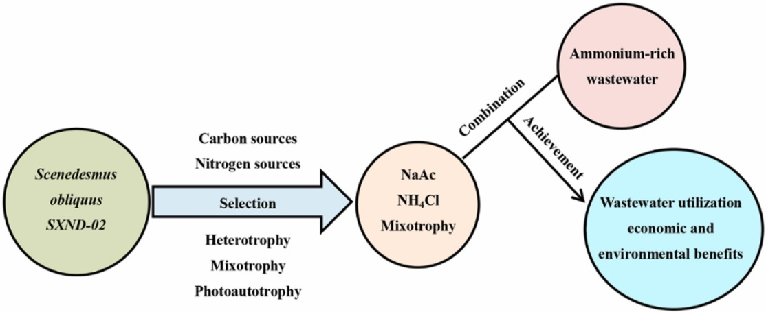 微藻资源化利用废水耦合功能性肥、生物刺激剂、土壤改良剂及生物农药制备及其在现代农业体系中的示范应用具有重要的意义。一方面可以净化废水,达到水回用和节约用水的环境效益,另一方面收获的微藻生物质可应用于现代农业体系,可实现农业提质增效的经济效益。但废水中通常含有高浓度的氨氮,往往抑制微藻的生长与废水净化效果。因此如何降低废水中的氨氮浓度和提高微藻对氨氮的耐受力是该研究领域的热点与难点。