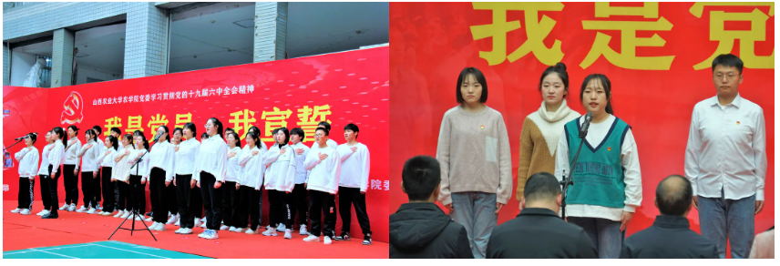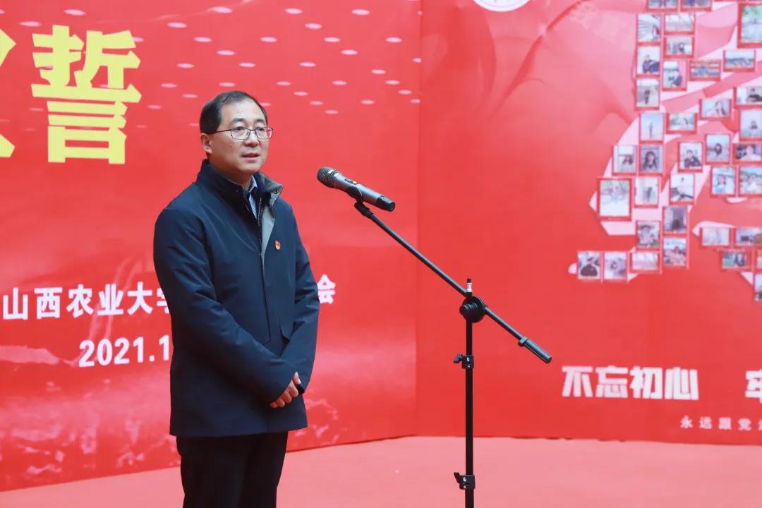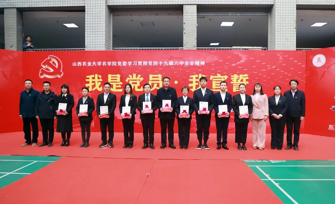 为进一步学习贯彻党的十九届六中全会精神,深入推进学院党史学习教育,增强党支部凝聚力、战斗力,充分发挥党员先锋模范作用,号召全体党员深入学习领会、把握精神实质,奋力开创新时代安博官网体育高质量发展新局面,11月27日上午,(中国)有限公司党委在太谷校区实验大楼二层召开“我是党员·我宣誓”主题党日活动,(中国)有限公司全体党委委员、所属11个支部的支部书记、专职党务工作者、教工第一党支部党员和学生第一、二党支部学生党员共150余人共同参与本次活动,校党委书记廖允成,校党政办公室主任方亮应邀出席活动,活动由(中国)有限公司教工第一党支部书记、种子系副教授冯万军,学生第二党支部书记、分团委副书记张意奉主持。