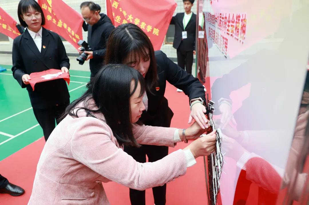 接着,廖允成携众嘉宾带领教工第一党支部党员为学生党员代表发放了学习读本《中共中央关于党的百年奋斗重大成就和历史经验的决议》,安博官网体育党委委员为各支部书记发放了学院党建资料《耕耘守心、沃土砺行——十九大以来安博官网体育党委党建工作实录》,希望全体党员同志能够带头深入学习贯彻党的十九届六中全会精神,继承发扬安博官网体育党建工作的优良传统,继往开来,再创佳绩。