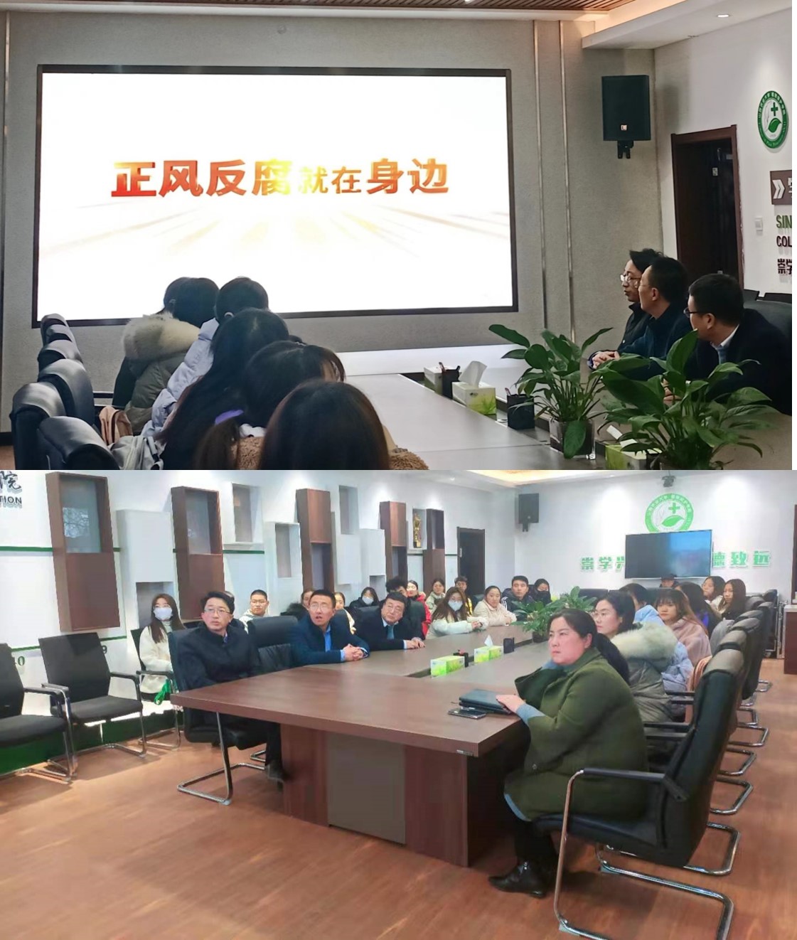 太谷校区的师生观看了电视专题片《正风反腐就在身边》,这部被收录在中央纪委国家监委网站上的党风廉政教育片,通过讲述16个近年来发生的正风肃纪反腐的真实案例,让广大师生感受到全面从严治党就在身边、纪检监察工作就在身边、正风肃纪反腐就在身边。