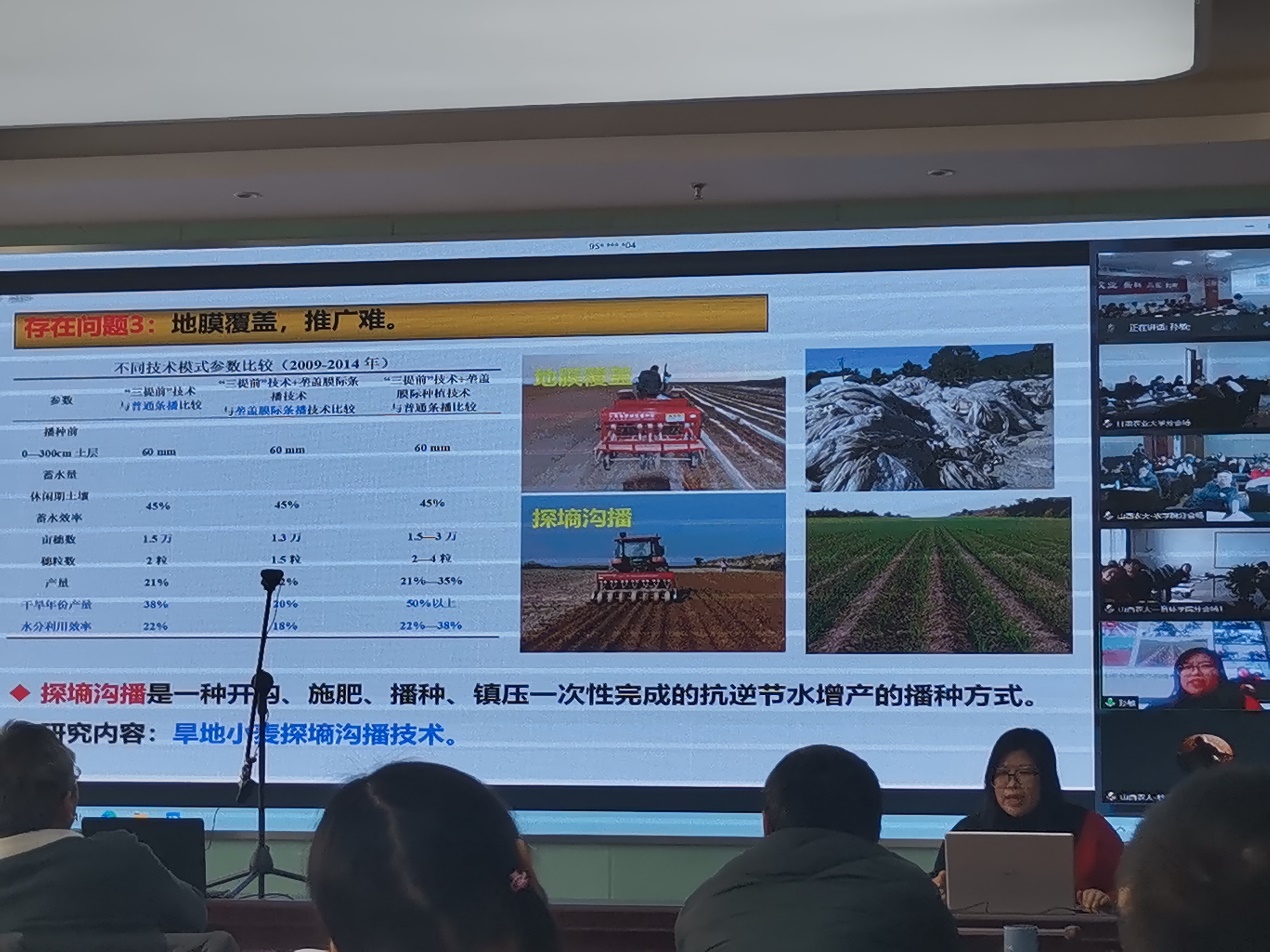 (中国)有限公司孙敏教授作了《旱地小麦蓄水保墒适水减肥绿色生产技术研究》的报告,介绍了团队在旱地小麦绿色生产技术研发方面取得的最新进展。