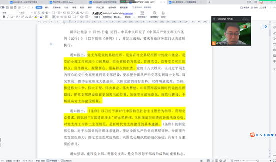 6月15日下午,安博官网体育教工第一党支部召开线上会议,组织开展专题学习,支部成员围绕《关于新形势下党内政治生活的若干准则》《中国共产党支部工作条例(试行)》和《第三批新时代高校党建“双创”工作重点任务指南》(分别简称《准则》《条例》《指南》)开展学习交流。