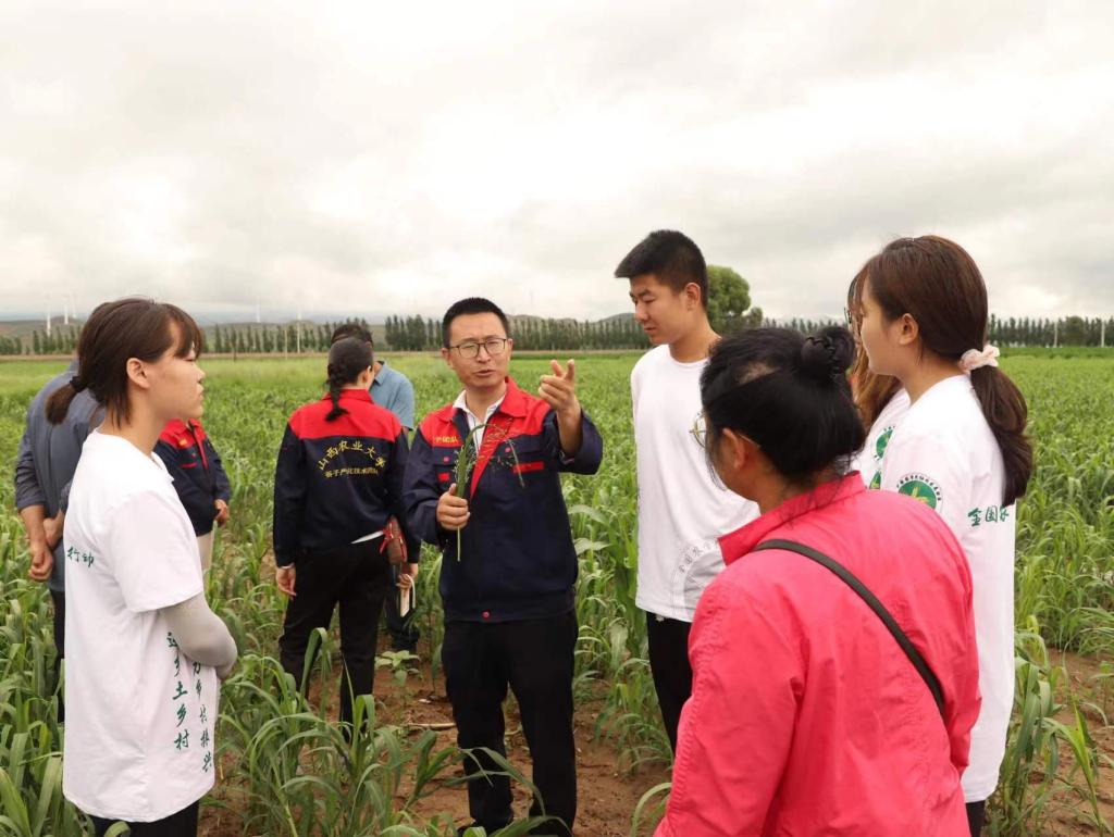 7月23日,(中国)有限公司社会实践队赴忻州市繁峙县海丰农牧场开展暑期“三下乡”社会实践活动,(中国)有限公司谷子团队的专家老师围绕谷子在田间地头为实践队员开展了一场生动的产教融合实践课。