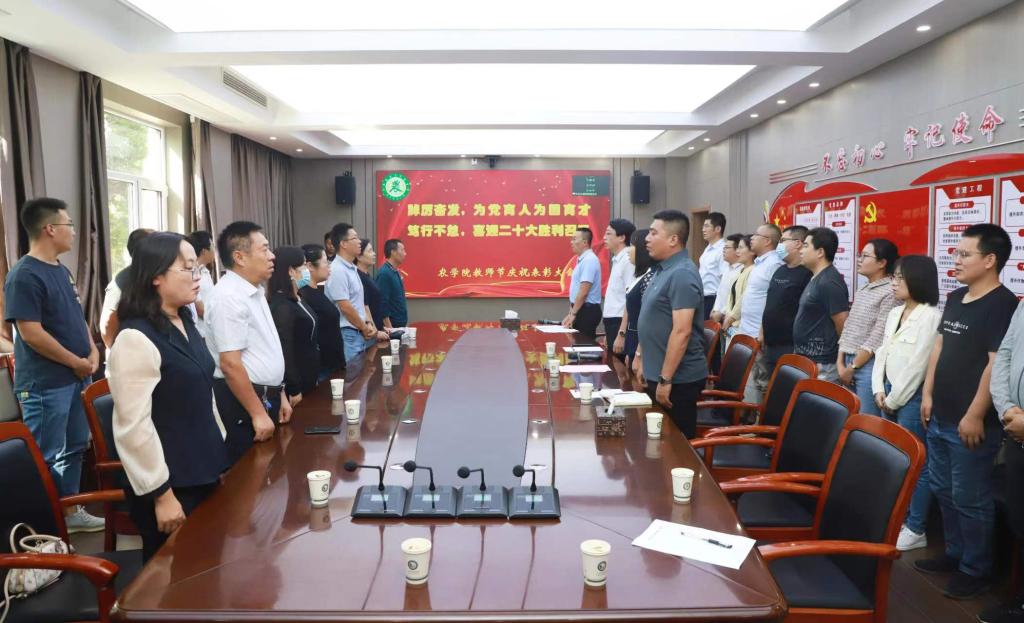 又见秋光满,处处桃李香。9月6日下午,在第38个教师节即将来临之际,学院隆重举行以“踔厉奋发,为党育人为国育才;笃行不怠,喜迎二十大胜利召开 ”为主题的庆祝教师节暨教师表彰大会。院党委书记荆立群、院党委副书记白益磊、副院长冯美臣、副院长郭数进和师生代表欢聚一堂,共同庆祝第38个教师节。会议由副院长郭数进主持,采用线上线下相结合的方式进行。