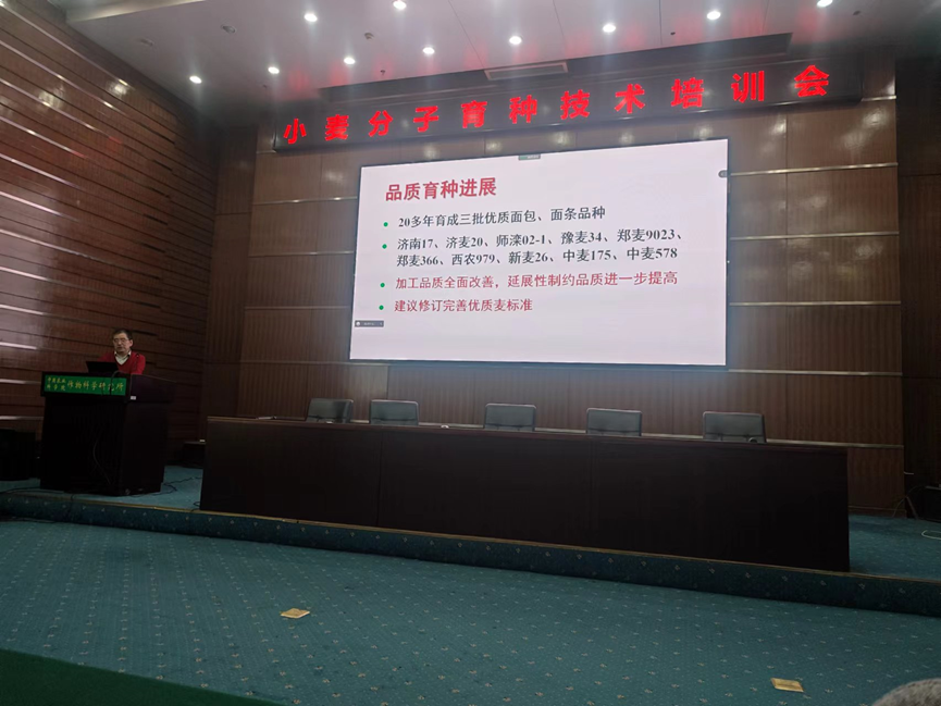团队成员参加了项目组织的“小麦分子育种技术” 培训会,学习了“小麦品质分子育种”、“小麦功能标记开发于应用”、“高通量DNA提取及标记开发”、“小麦抗赤霉病标记开发于应用”、“小麦育种经历、体会及产业化实践”、 “优质强筋品种中麦578选育及思考”。