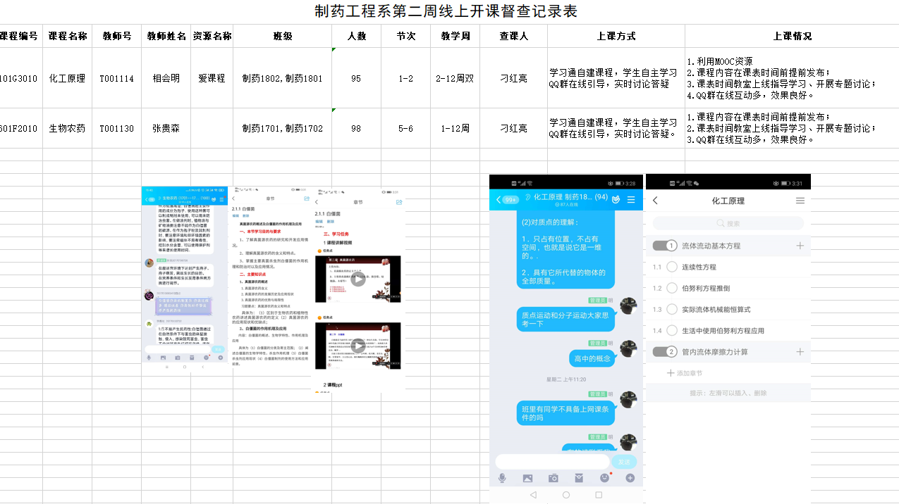 1、系主任与教研室主任认真履行学校关于线上教学检查监督的规定,成立上课督察组,每周制定检查任务表,按时检查老师备课、建课和上课情况;并且在课表时间,进入直播课堂观摩学习教师上课情况。