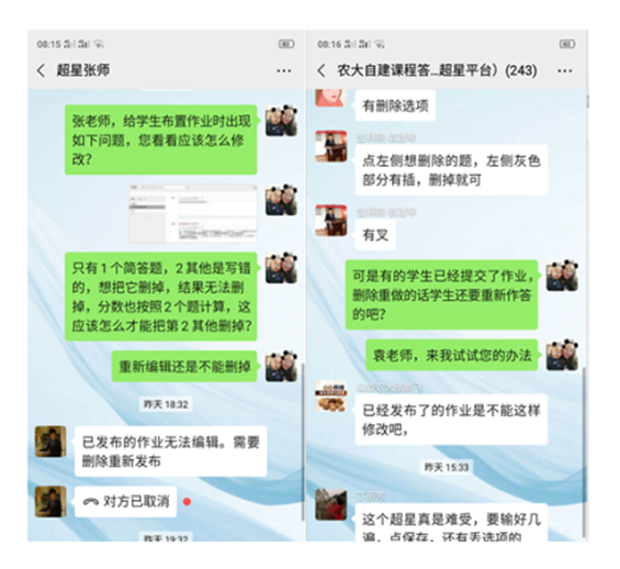 4、超星平台使用过程中出现的一些问题,如发放讨论、提问时教师无法正常修改结束时间,导致有些学生作业没有正常提交;发现发放的作业存在问题时无法修改等。