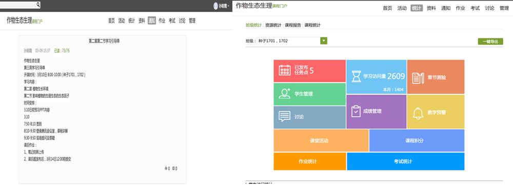 2)教学管理更加有效。比如学生签到情况更易于统计,作业更易于管理。由于教学平台有效的统计管理系统,使得学生的积极性提高,基本都参与到与老师的互动当中。