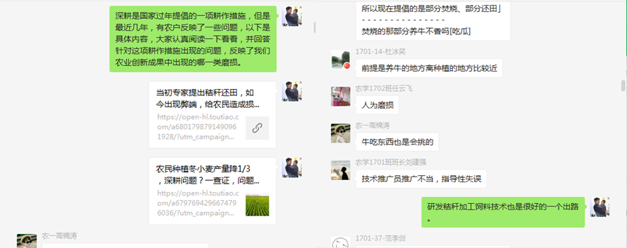 《农业推广学》课程与中国慕课在线课程《现代农业推广学》的教学内容、教学大纲十分相近,而且《现代农业推广学》在线课程增加了典型案例的内容,这有助于学生将理论知识与农业实践进行紧密结合。因此,教学课程团队成员充分商量后,决定采用中国慕课在线课程平台为主。为了充分保障教学成效,课程团队设置了多项教学及考核途径:首先,在中国慕课教学视频观看前设置复习习题,便于学生对知识点的回顾;其次,围绕本次课程知识点,在线下慕课堂发布案例分析和讨论,便于考核和掌握学生学习程度和成效;然后,利用微信线下平台,围绕所有知识点,点名提问学生,查看学生学习情况;最后,在微信群中围绕所学内容,紧扣当前农业热点问题、现象,和基于学生所学、专业背景及生活经历,发布热点案例和议题,让所有学生展开充分讨论。