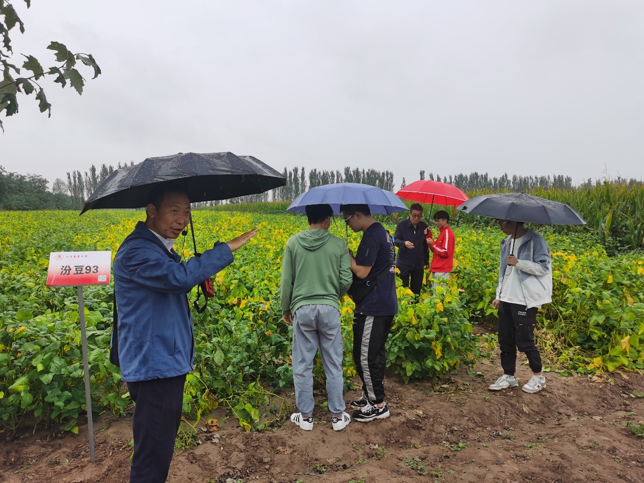 学生参观学习国家审定品种抗旱大豆品种汾豆93