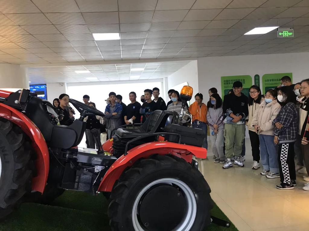图3 农学专业2018级同学在现场观摩现代化智能拖拉机