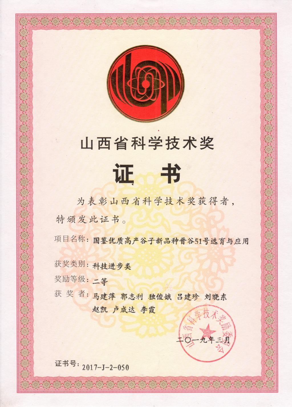 国鉴优质高产谷子新品种晋谷51号选育与应用