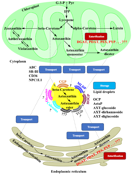 虾青素(Astaxanthin)是一种红色脂溶性酮式类胡萝卜素,与其它类胡萝卜素或维生素E等天然产物相比,虾青素具有最强抗氧化活性, 在延缓衰老、提高免疫力、防治糖尿病和心血管疾病等方面均有突特功效, 已广泛应用于食品、制药、保健、饲料和日化等行业。天然虾青素生物合成仅发生于部分微藻、细菌和酵母,而大多数高等动、植物不存在虾青素合成途径。人类仅可以从三文鱼、贝类和鳟鱼等海洋生物中少量摄取虾青素。应用合成生物学及代谢工程技术在高等植物尤其是重要农作物构建虾青素富集途径对生物强化功能性作物开发和利用以及大健康产业发展具有重要科学意义和应用前景。