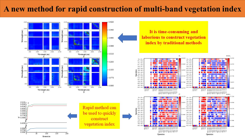 基于高光谱信息寻找构建植被指数的波段信息,往往存在上百万种组合,多波段植被指数组合甚至呈指数增长。这极大地降低了植被指数的开发效率。因此,该研究结合遗传算法提出了一种快速构建多波段植被指数的方法,以降低构建多波段植被指数的时间复杂度。该研究成果以安博官网体育为第一单位,以“A new method for rapid construction of multi-band vegetation index”为题在线发表在中科院一区TOP期刊International Journal of Applied Earth Observation and Geoinformation上。研究结果表明,该方法在建立双波段植被指数时能极大地降低构建所需的时间,同时所构建的三波段、四波段和五波段植被指数在冬小麦地上干生物量、叶面积指数、叶绿素密度和植株含水量的高光谱估测方面表现优异。该方法可为构建新型植被指数提供一定的技术支持和理论依据。