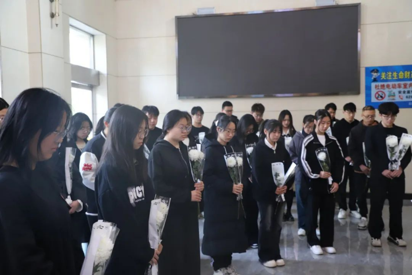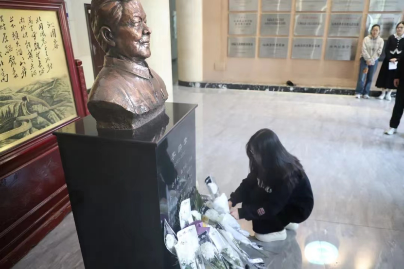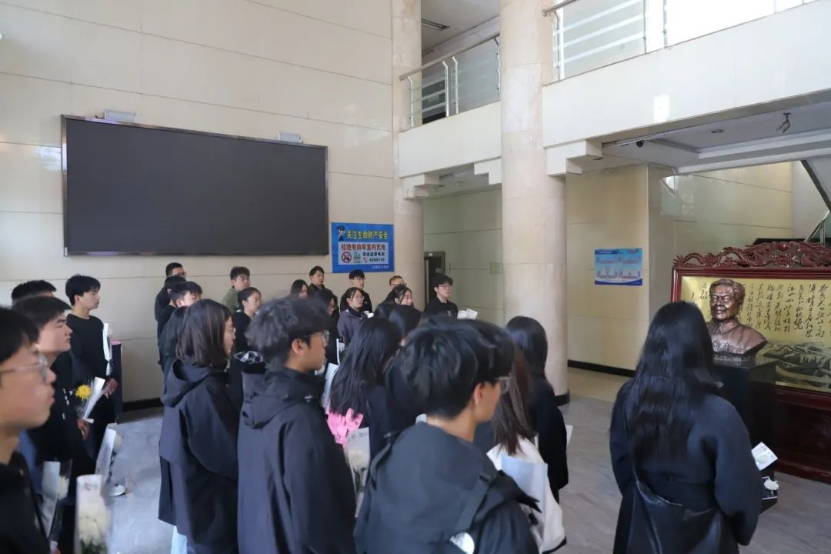 为寄托哀思,同学们在李焕章先生雕像前肃立,集体深切悼念李焕章先生。现场气氛凝重,每一位同学的神情都满含追思。