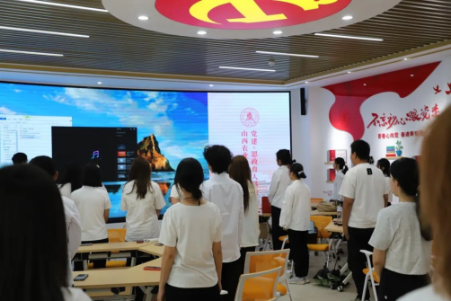 伴随着庄严肃穆的国歌,全体团员目光坚定、庄严肃穆,带着坚定的理想信念唱响国歌,荣誉感和使命感溢于言表。