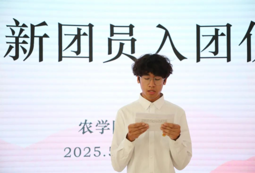 由农学2401班吴喜军同学和农学2402班高阔同学代表新团员发言。他们展现了新团员们积极向上的精神风貌,代表全体新团员表决心,明确努力方向,激励大家在今后践行团员责任。