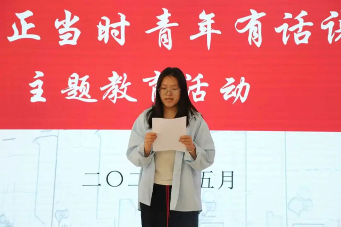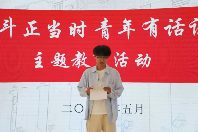 活动伊始,全体师生庄严肃立,齐声高唱团歌,嘹亮的歌声展现出青年学子的蓬勃朝气。全体学生共同观看了纪录片《青春接力跑》,影片中一代代青年传承使命、接续奋斗的故事深深触动了在场的每一个人。多位青年代表依次上台演讲,围绕“五四精神”展开阐述,他们结合自身学习生活实际,从爱国、进步、民主、科学的精神内核出发,畅谈新时代青年对五四精神的理解与传承。