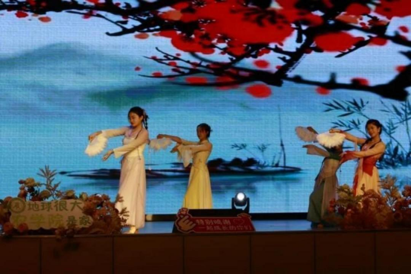 帘幕轻启,舞者的裙裾翩然而至,长扇舞动,在舞台的月色里洇开一片胭脂色的云。指尖捻着无形花瓣,却勾住校园长椅晨读的光影,恰似藏在论文扉页间那未写完的临别赠言。
