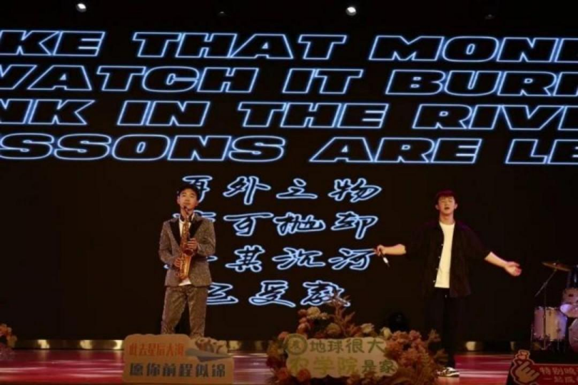 诙谐幽默的演绎为晚会增添了一抹令人难忘的欢乐色彩。用笑声冲淡毕业离愁,让告别在幽默中成为新旅程的起点。哪怕未来充满未知,也要带着校园里的欢声笑语,无畏地踏上新征程。