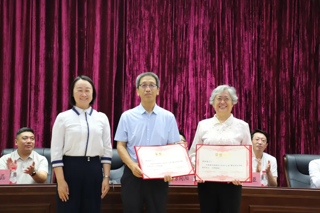 党委书记荆立群、党委副书记白益磊、副院长郭数进分别宣读了关于本次表彰大会的各项决定。在激昂的乐曲和热烈的掌声中,院领导为荣获“光荣在岗四十年”荣誉的老教师、“三育人”先进个人以及教学基本功竞赛获奖者颁发了荣誉证书并合影留念。