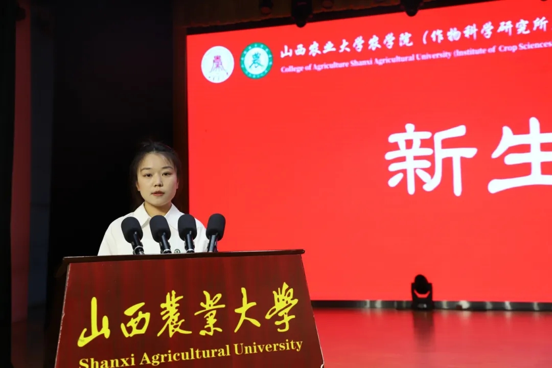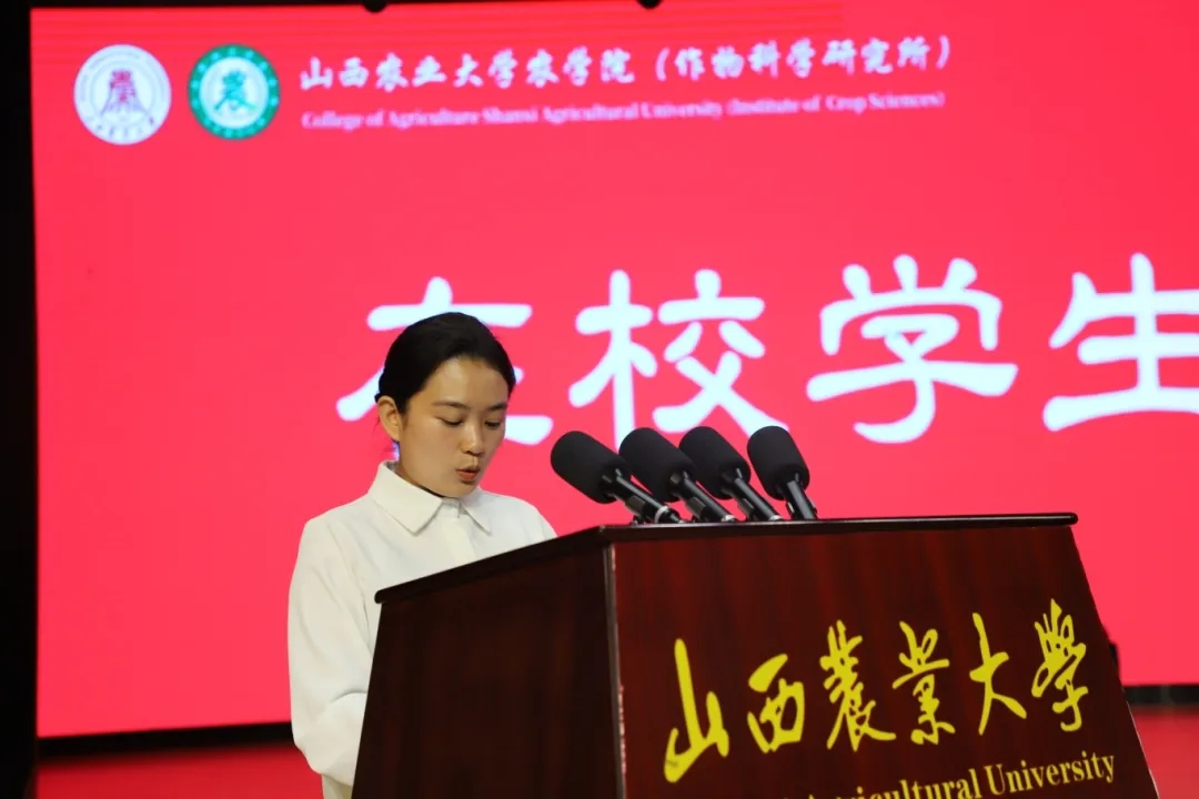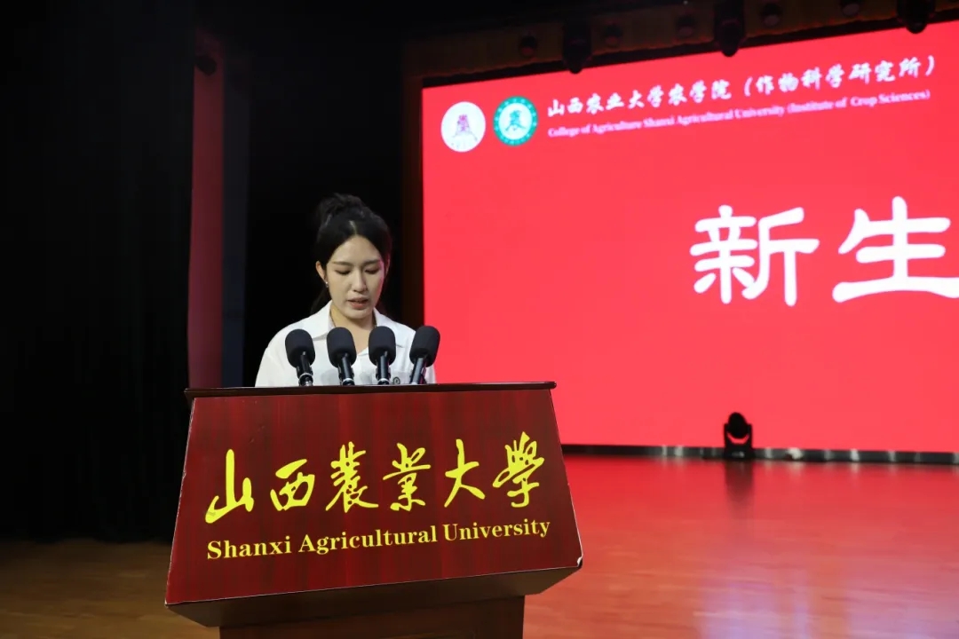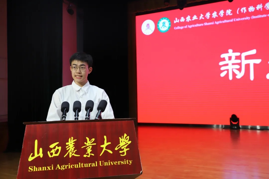 在学生代表发言环节,在校本科生代表臧海宁与研究生代表高舒林分别结合各自在(中国)有限公司求学成长的经历,鼓励2025级新生主动融入乡村振兴和社会主义现代化建设的伟大事业,以实干与担当书写无愧于时代的青春篇章。本科新生代表穆泽培、研究生新生代表杨静蕾与李雯在发言中郑重表态:会始终把初心使命牢记心间,以扎实的实际行动,坚信农学青年责任,守护心中的理想。