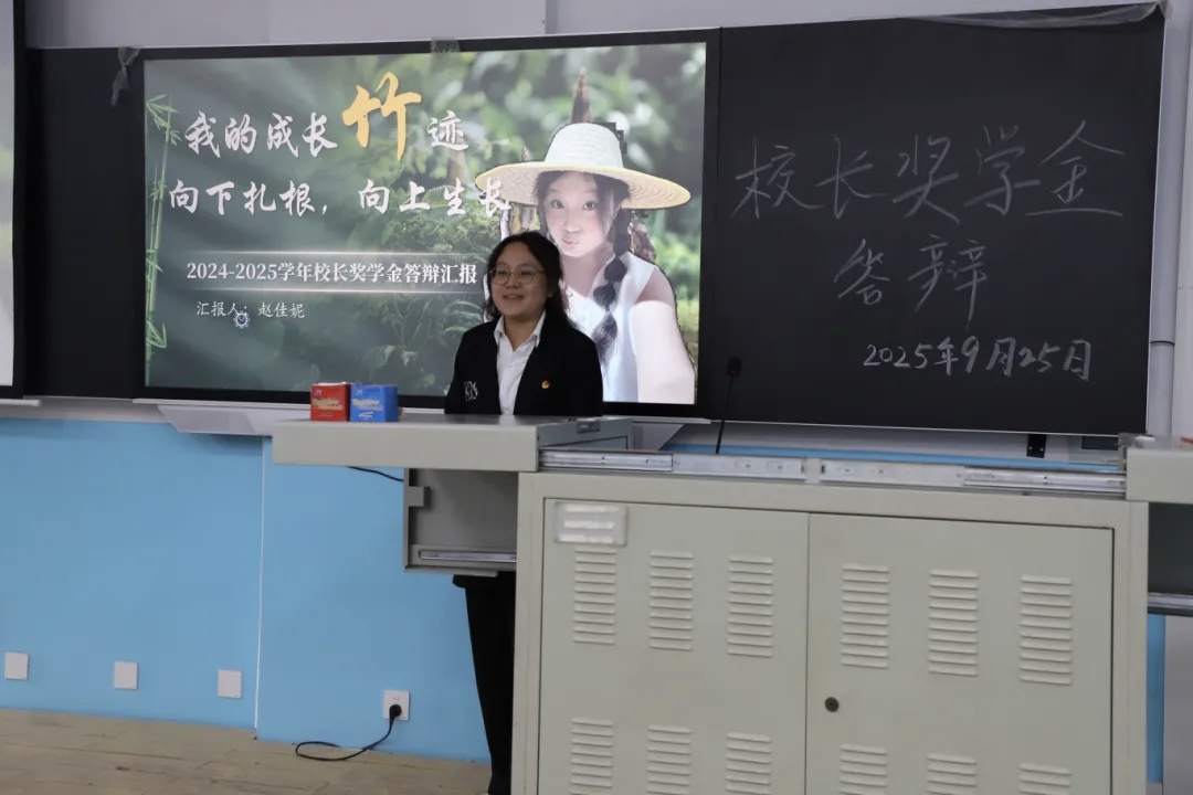 答辩环节中,候选学生依次登台,通过PPT演示的方式,围绕个人发展概况、思想道德修养、专业学业水平、社会实践经历、科技创新突破、志愿服务时长及综合能力素养等维度进行全方面汇报。评委组全程专注聆听,结合评选细则对候选学生的表现进行综合评议和量化打分。