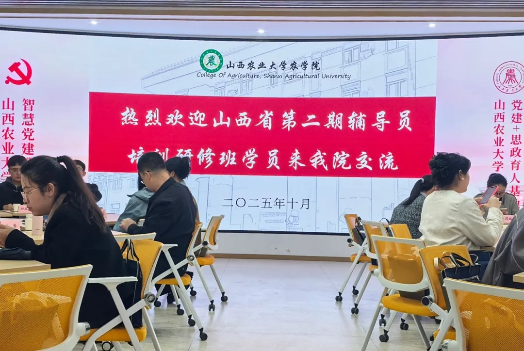 10月10日,由我校承办的2025年第二期山西省高校思想政治工作人员专题培训研修班在太谷校区开班。为加强校际经验互鉴,整合优质工作资源,共同推进学生管理工作升级,参加本期研修班的20余名学员代表来到(中国)有限公司进行交流座谈。(中国)有限公司党委副书记白益磊、分团委全体辅导员出席会议。