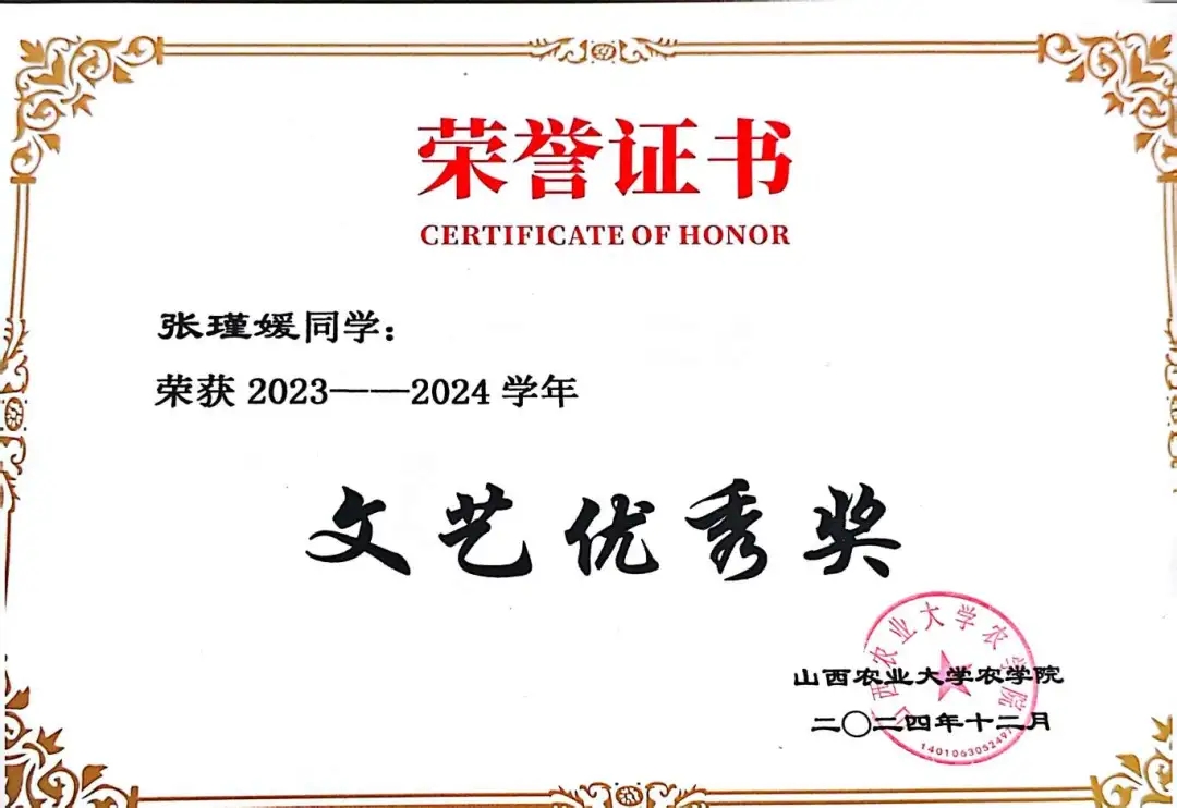 2023-2024学年:优秀学生、专业二等奖学金、文艺优秀奖