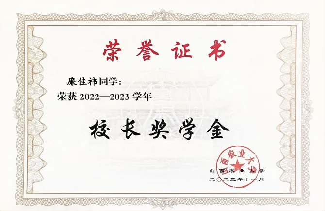 拿到国家奖学金,我心里满是感激与振奋。感谢学校的培养、老师的指导和同学的帮助,这份荣誉不仅是对我过往努力的肯定,更让我坚定了深耕农学、助力乡村振兴的初心。未来我会把这份认可化作动力,继续保持热爱、踏实前行,不辜负这份荣誉,努力成为更优秀的农科学子,为农业发展贡献青春力量。